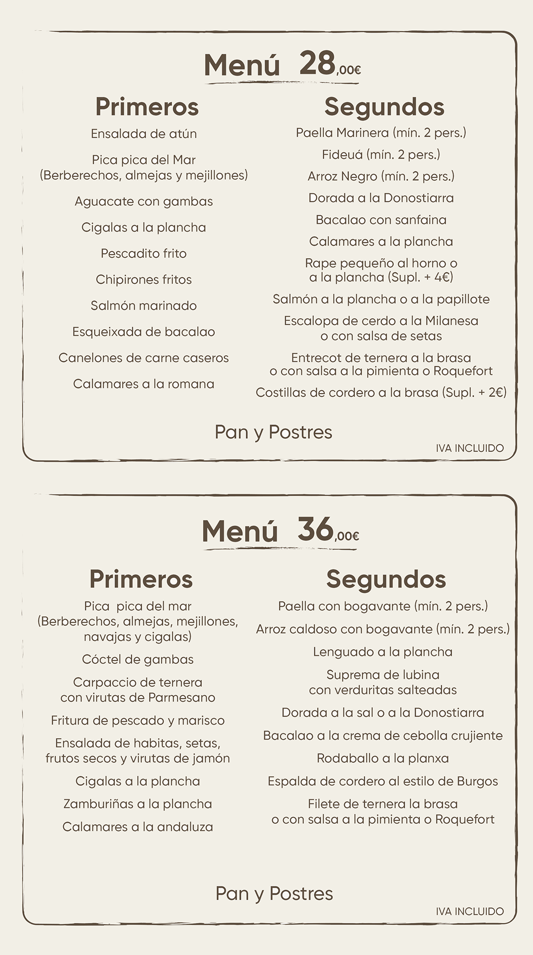 🍲 Menús de Noche, Fines de Semana y Festivos